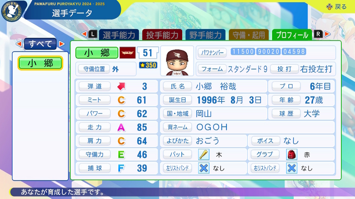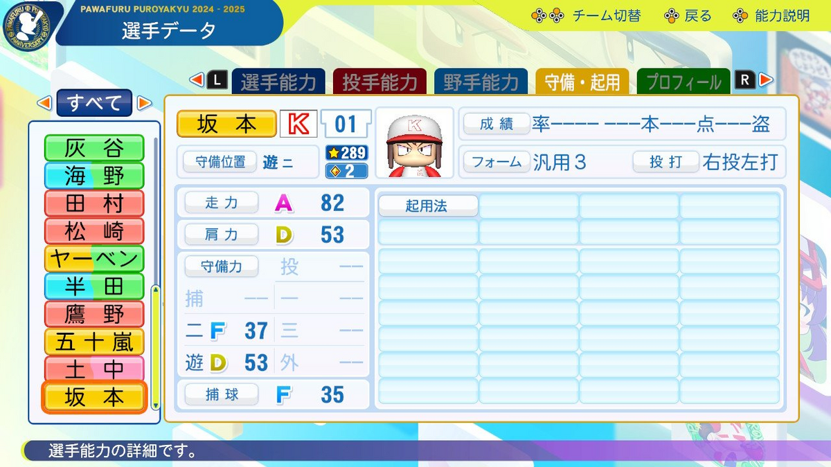 ⇧これは2024デフォルトの坂本ゲンの能力値