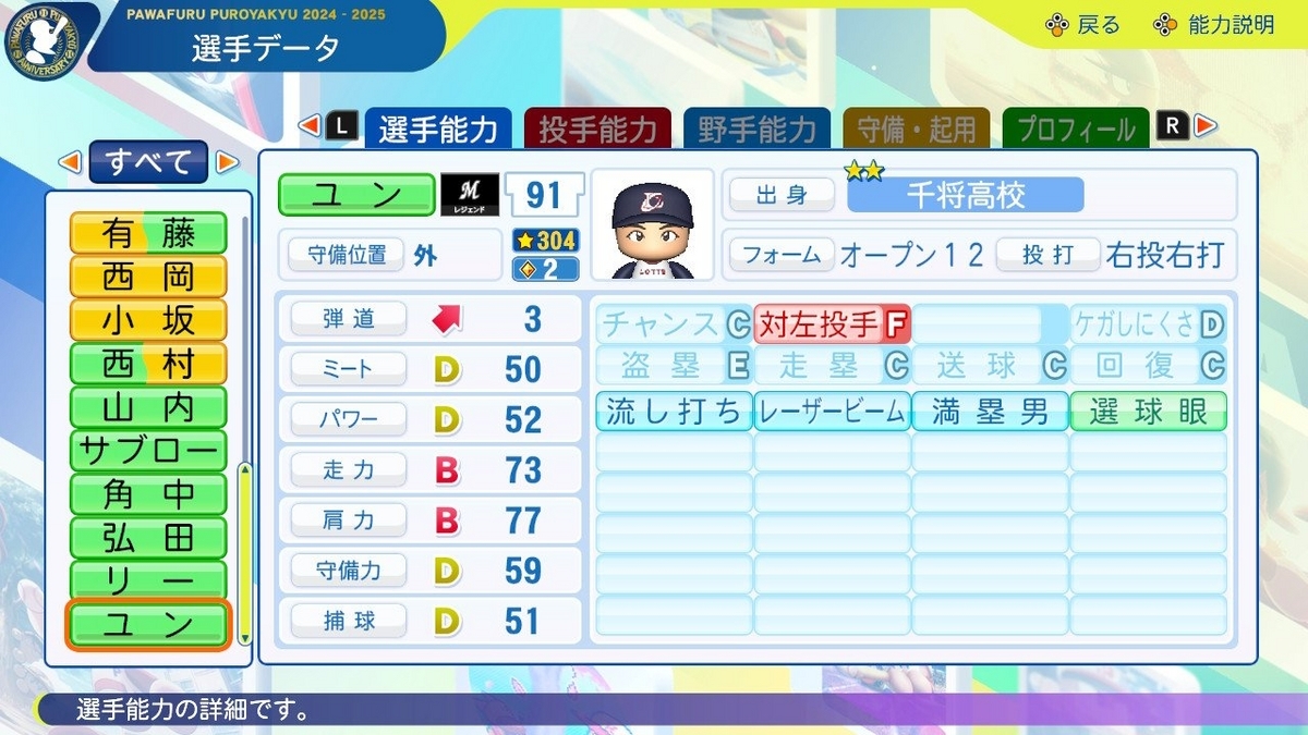 パワプロに「尹」と「熙」の漢字がなかったので、全てカタカナ表記にしました。