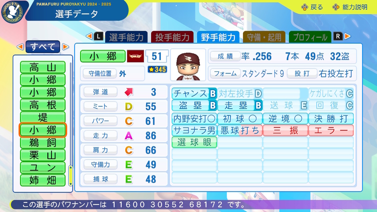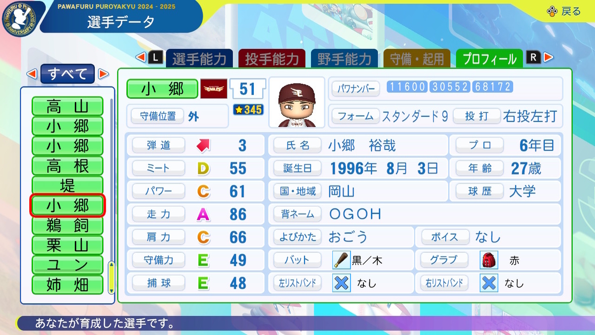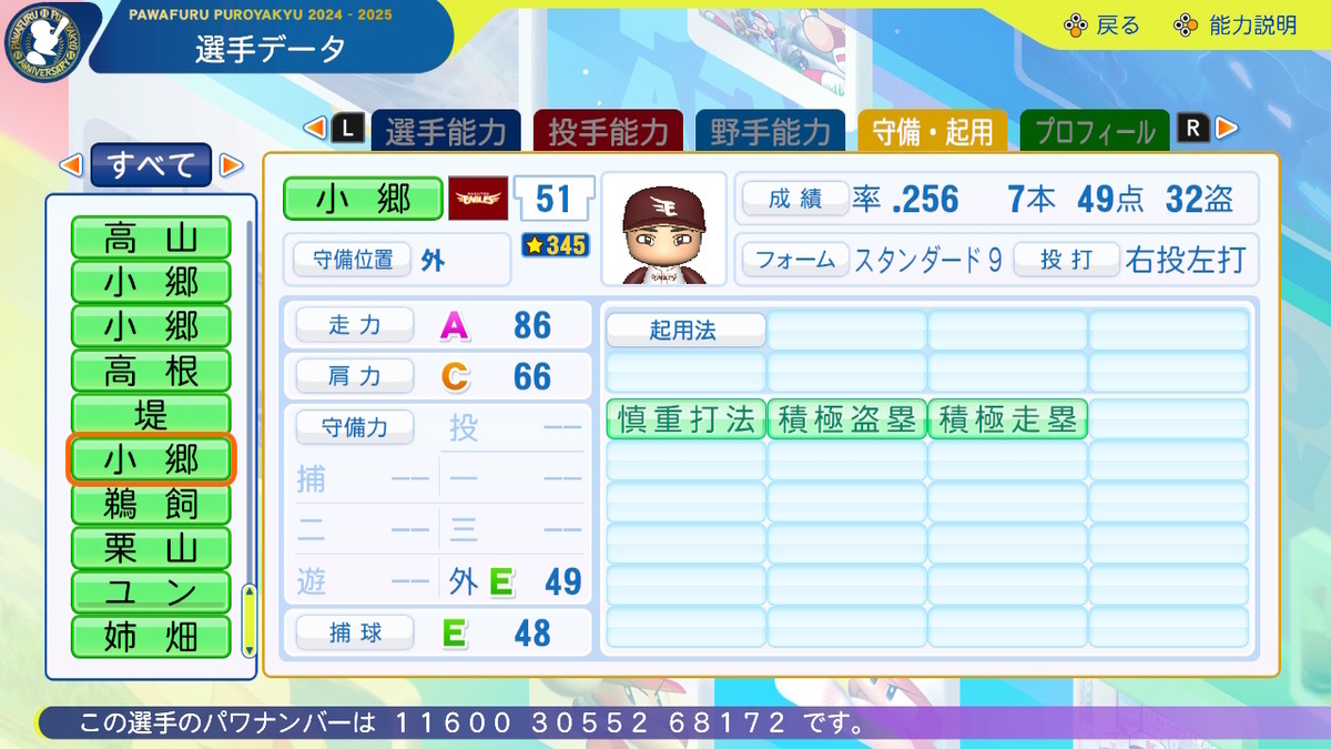 確実に塁に出るリードオフマンらしい選手が、小郷なのです。(大事なことなので二回言いました)