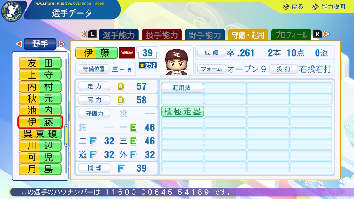 成績:44試合 打率.261 2本塁打 10打点 0盗塁